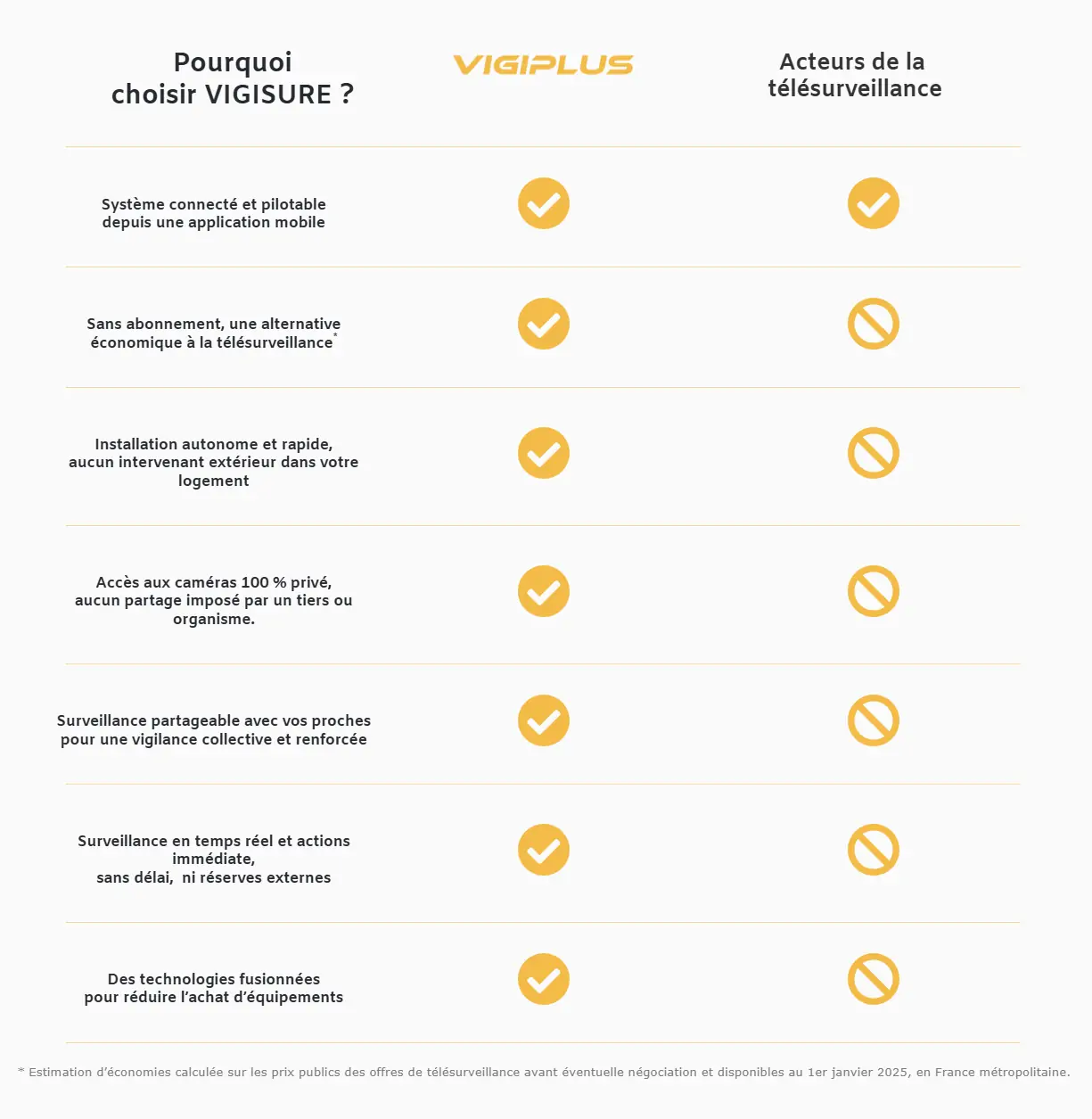 * Estimation d’économies calculée sur les prix publics des offres de télésurveillance avant éventuelle négociation et disponibles au 1er janvier 2025, en France métropolitaine.