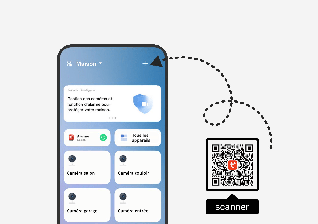 Le système VIGIPLUS, piloté via l’application Tuya, vous offre un contrôle intelligent et automatisé de votre sécurité.