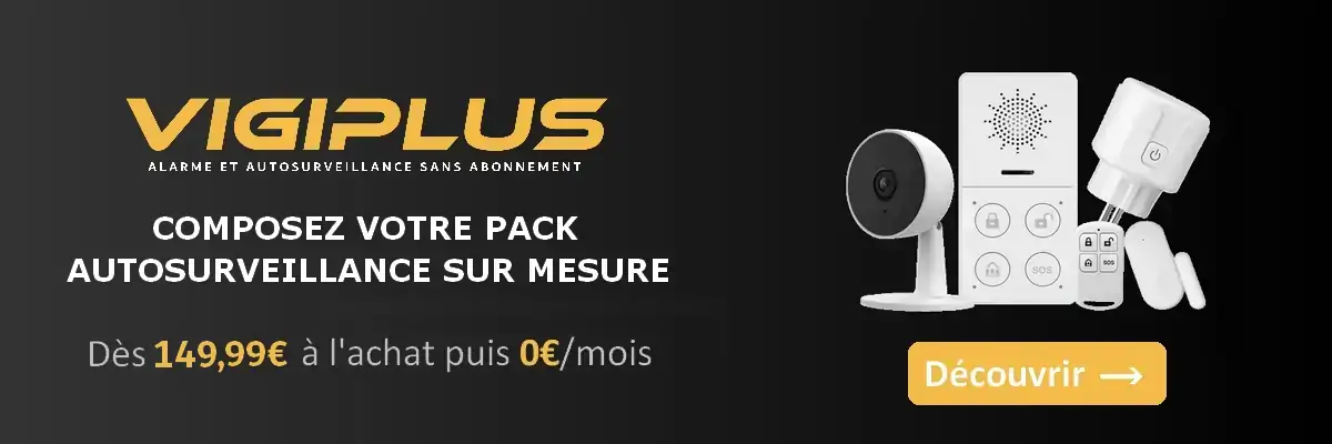 Chez VIGIPLUS, vous avez le choix entre deux packs complémentaires : le Pack Alarme, basé sur la détection d’ouverture de porte, offre une protection simple, fiable et efficace sans recours à la vidéo, tandis que le Pack Autosurveillance ajoute à cette détection des caméras intelligentes permettant de voir à distance en temps réel ce qui se passe chez vous, pour une tranquillité d’esprit renforcée. Les deux packs sont compatibles avec le diffuseur de brouillard (en cas d’intrusion confirmée) et le simulateur de présence (dissuasion pendant vos absences), et sont équipés d’une batterie de secours en cas de coupure d’électricité. Entièrement évolutifs, vous pouvez démarrer avec un pack de base et ajouter par la suite des caméras, un diffuseur de brouillard ou d’autres accessoires selon vos besoins.