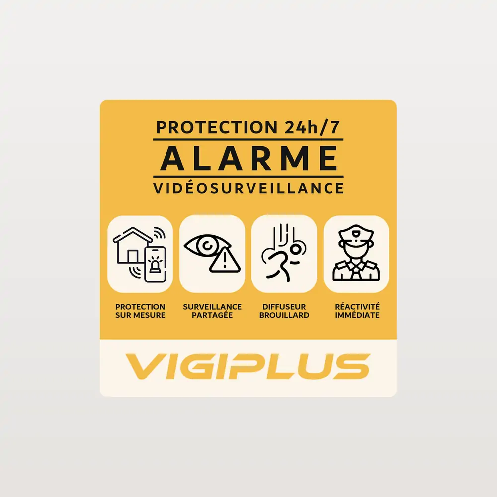 Renforcez la sécurité de votre domicile avec les autocollants dissuasifs VIGIPLUS. Conçus pour être placés sur vos portes, fenêtres ou tout autre point d’entrée, ils signalent clairement la présence d’un système de sécurité et découragent les tentatives d’intrusion avant même qu’elles ne surviennent.
