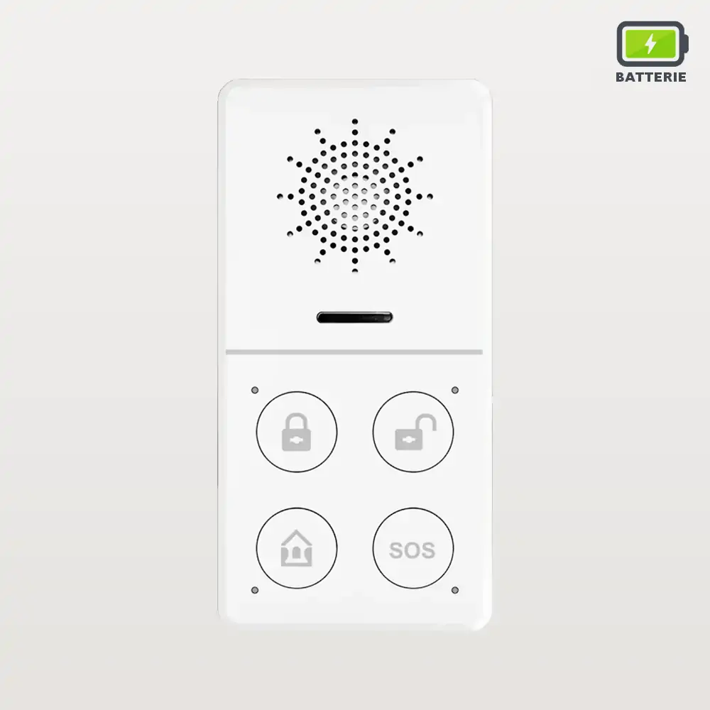 Gérez votre alarme en toute simplicité grâce à cette télécommande intuitive. Activez ou désactivez votre alarme d’un simple clic. En cas d’urgence, le bouton SOS déclenche la sirène d’alarme.