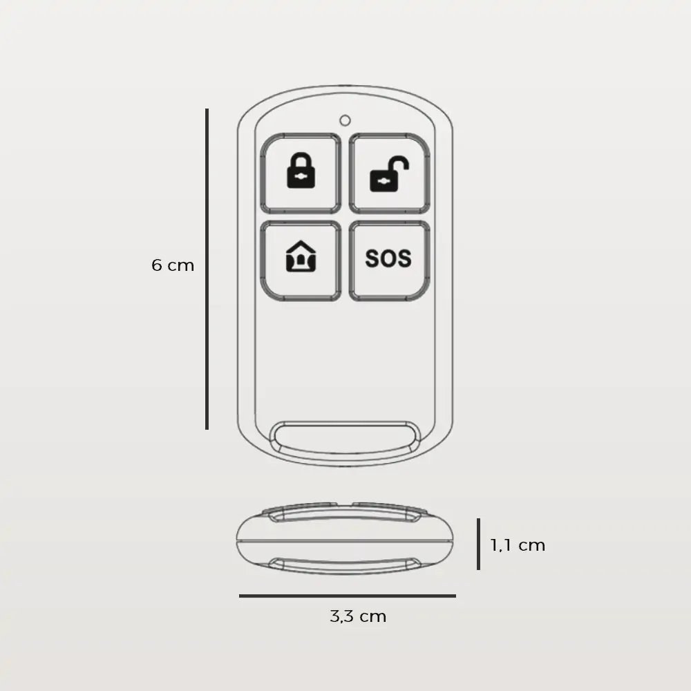 Gérez votre système d’alarme en toute simplicité grâce à cette télécommande intuitive. Activez ou désactivez votre alarme d’un simple clic. En cas d’urgence, le bouton SOS déclenche immédiatement la sirène d’alarme.